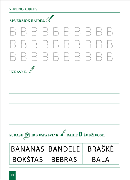 • Stiklinis kubelis raidžių šalyje. Pratybų sąsiuvinis 5–7 metų vaikams, specialiųjų poreikių mokiniams.