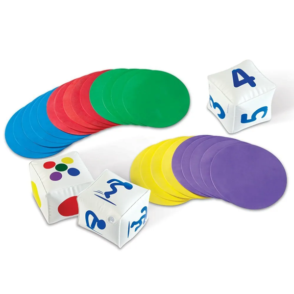 Pasiruoškite ir judėkite! Linksmas pratimų rinkinys pakelia aktyvų mokymąsi į visiškai naują lygį. Stovėkite ant spalvotų apskritimų kilimėlių ir ridenkite didelius kubus, kad pamatytumėte, kokį pratimą atlikti ir kiek kartų. Naudokite šį universalų veiklos rinkinį, kad sudarytumėte mokinių grupes arba paskatintumėte mokinius reaguoti, kai ridenate spalvotą kubą ir kviečiate mokinius.